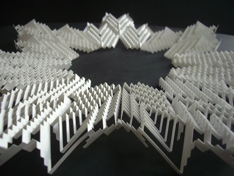 Скульптуры, напоминающие искусство оригами, с многочисленными деталями выполнены с очень большой точностью.