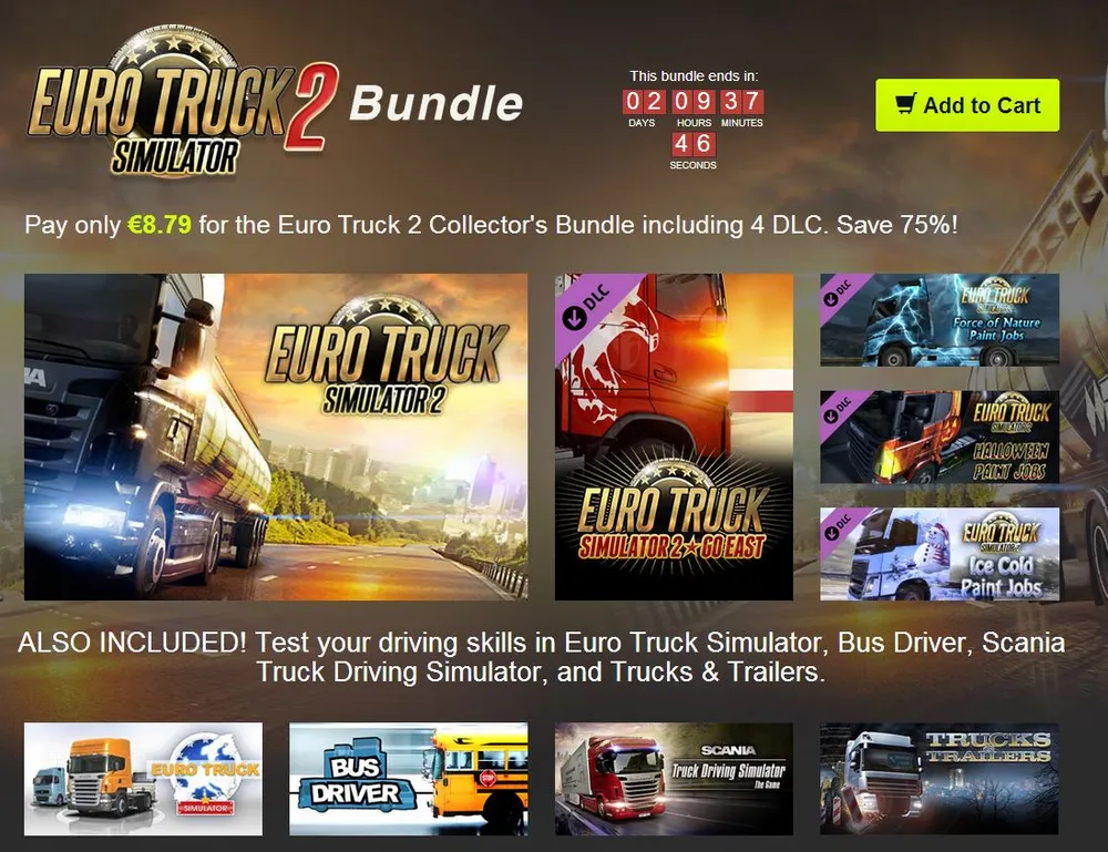 Ссылка на bundle - http://www.bundlestars.com/all-bundles/euro-truck-simulator-2-collectors-bundle/