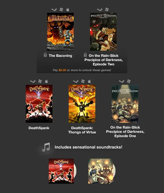 Второй - новая еженедельная распродажа от того же Humble Bundle! На этот раз от Hothead Games!