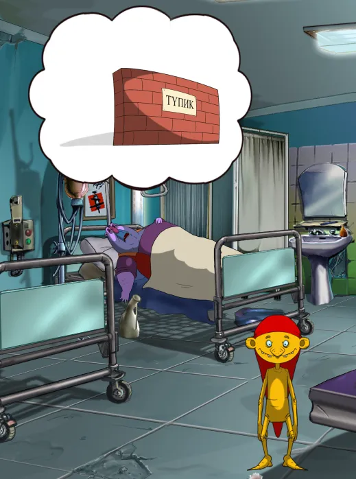 Второе, вспоминаем, что это все-таки квест, стартуем анализировать задачки. Радуемся, здесь есть логика, как и адекватная, так и креативная. Но моя темная сторона силы - все обосрать, не дает мне покоя. КАК Я ДОЛЖЕН ДОПЕРАТЬ, ЧЕГО ОТ МЕНЯ ХОТЯТ! Заметно, разработчики не забывали про игрока, Бураттило на каждое неправильное действие выдает различного рода вариации *Facepalm*?. При кликанье предметов нас балуют картинками, которые вертятся в его деревянной голове. Но все это не имеет значения по той простой причине, что до пути решения вы сами должны додумываться. Нам известна основная задача, но методы ее достижения – сугубо проблема наших сочных планктоновских мозжечков.