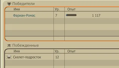 Как видите моему кулу удалось победить скелета даже на 6 уровне.
