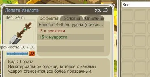 Теперь один небольшой нюанс. Если за предыдущие уровни, вам выпало какое-то оружие имеющие прочность, а название которого написано синим цветом, то вы сможете его неплохо продать