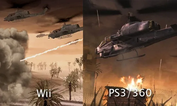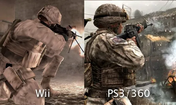 Просто из-за того что Wii делает ставку не на графику а на управление, только с её помощью геймеры могут почувствовать себя настоящими героями какой-либо игры. Что же касается других консолей то тут все наоборот. Ниже вы можете увидеть несколько скриншотов из Call of Duty 4: Modern Warfare для Xbox, PS3 и Wii.