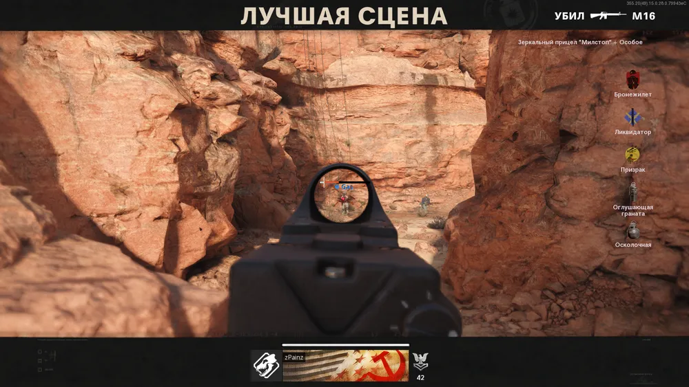 Дальше – больше. Есть полевая модификация – дополнительное снаряжение-способность, частота использования которой ограничена временем перезагрузки (КД). Например, я, будучи новичком, использовал противопехотные мины. Далее идут перки – пассивные навыки, облегчающие вашу игру. А венец всего «Джокер» - уникальная способность, дающая ощутимое преимущество: вместо одной гранаты взять две, или увиличить количество модификаций доступных вашему оружию и так далее.