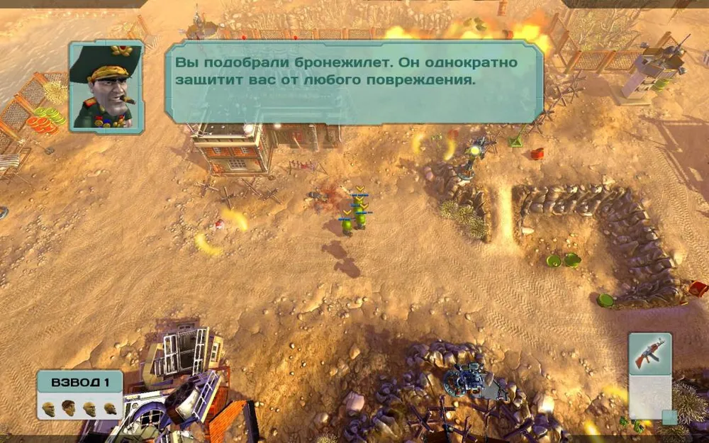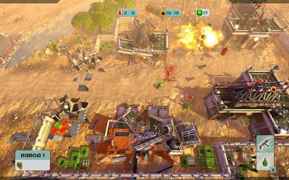 Дизайнеры постарались изобразить не правдоподобный, а изометрический мир. Мультяшные солдаты с комическим вооружением, и совсем серьезными разрушениями.