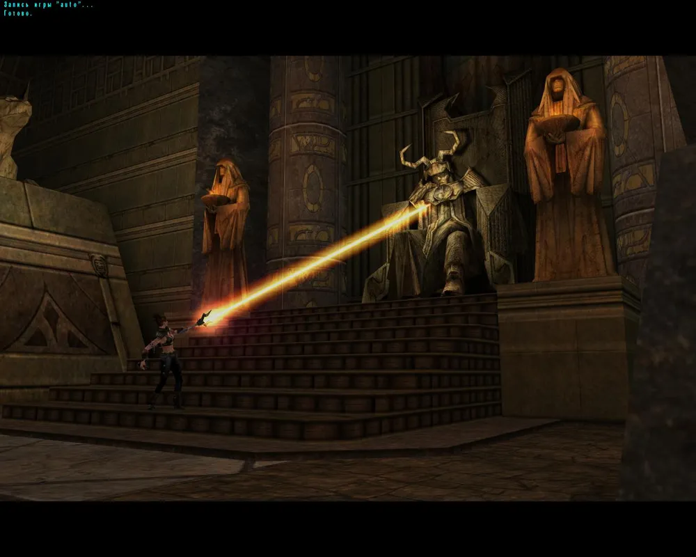 Зайдя в саму гробницу, видим, как Тавион использует посох. Мы же отвлекаем ее от этого занятия.