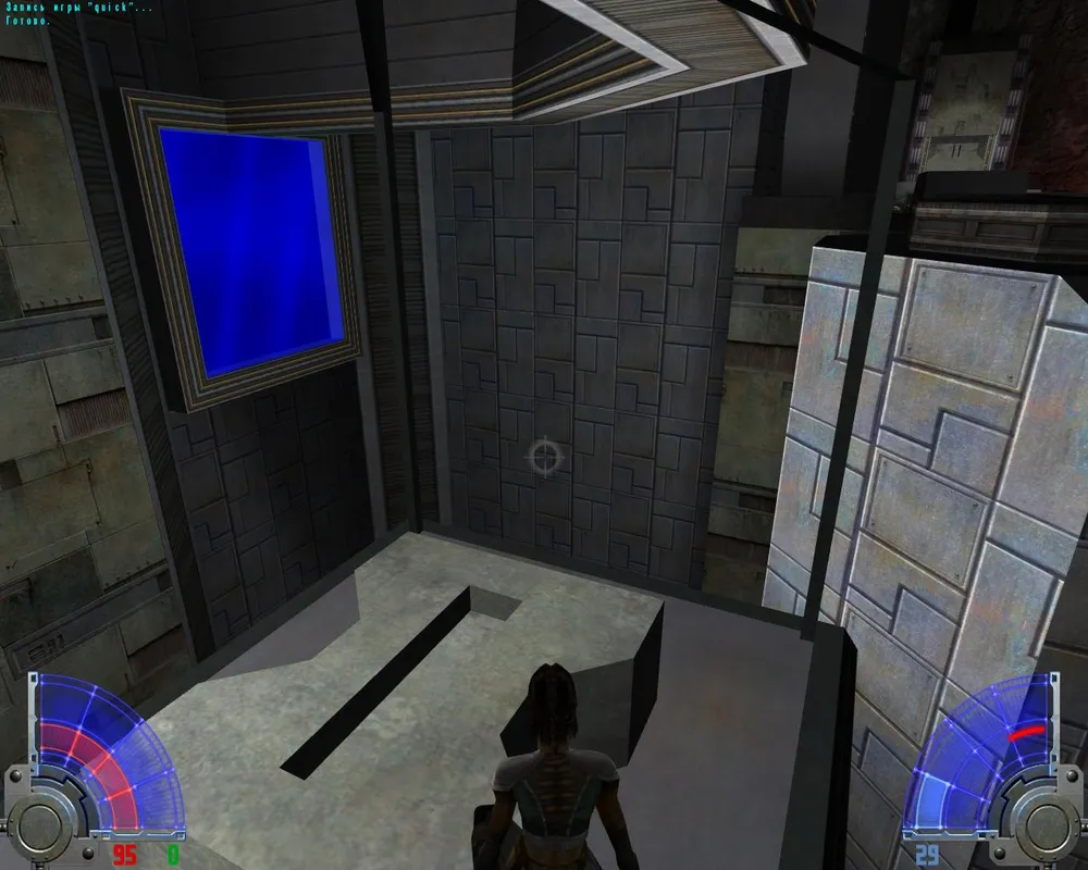 Теперь с него можно залезть в дыру в потолке. Добираемся до помещения с закрытой дверью, доходим в нем до конца и убиваем офицера с ключом. На лифте рядом с офицером можно спуститься в комнату с ящиком, из которой мы пришли.