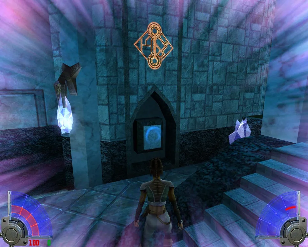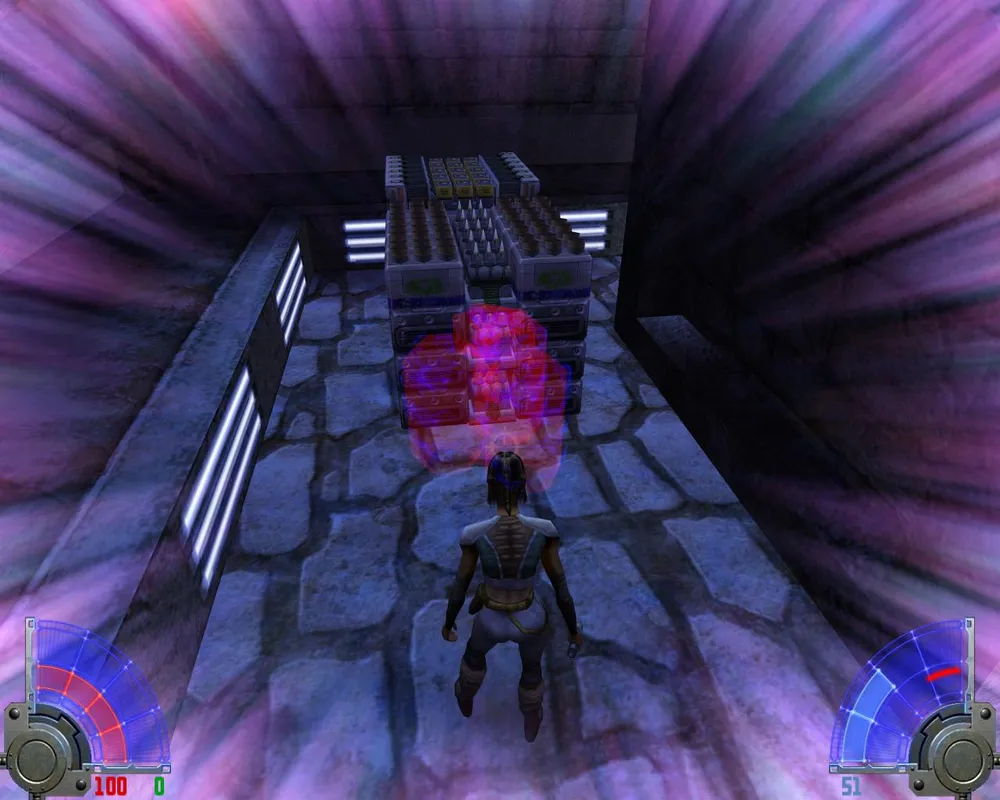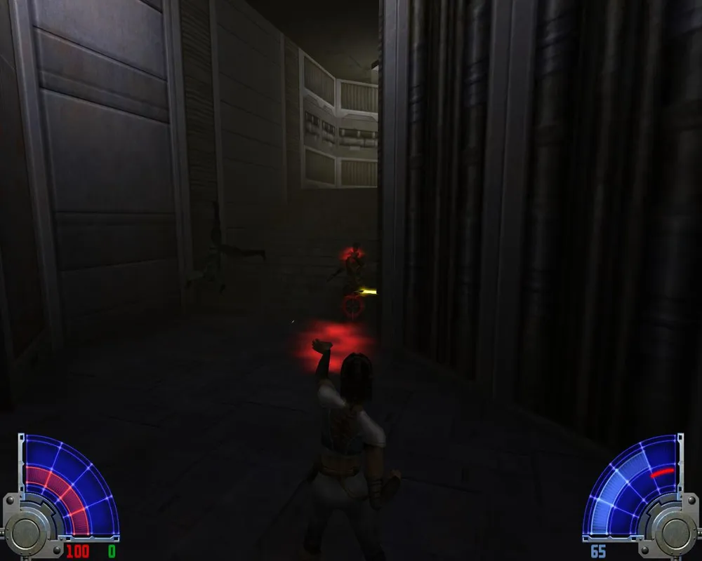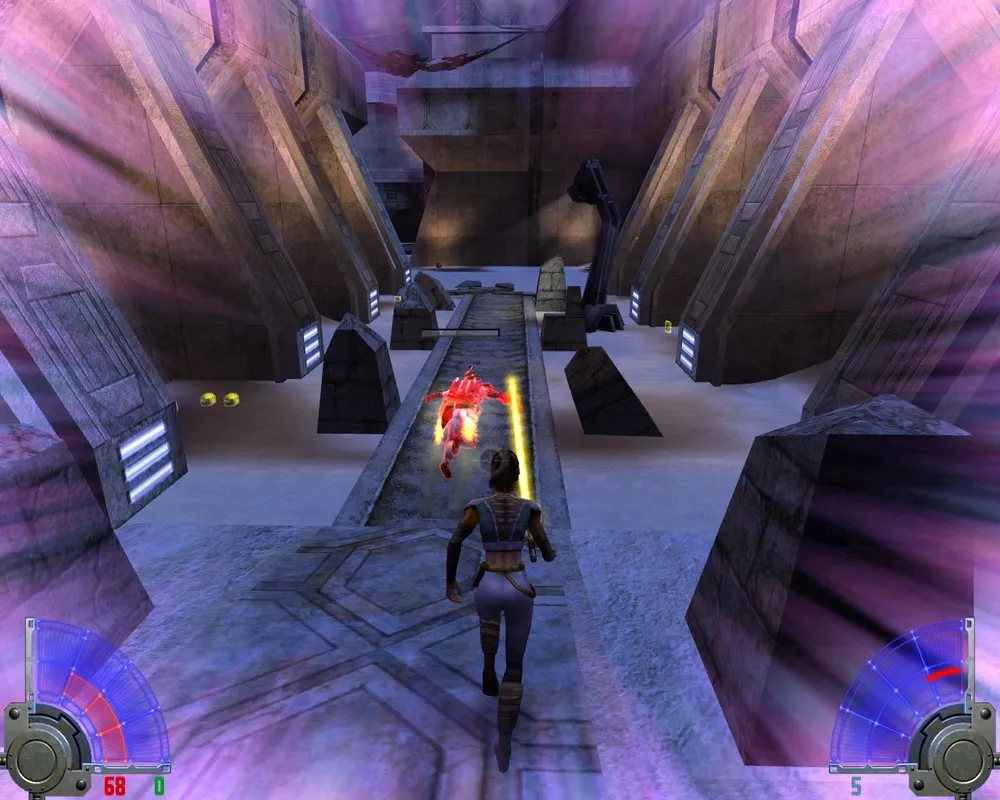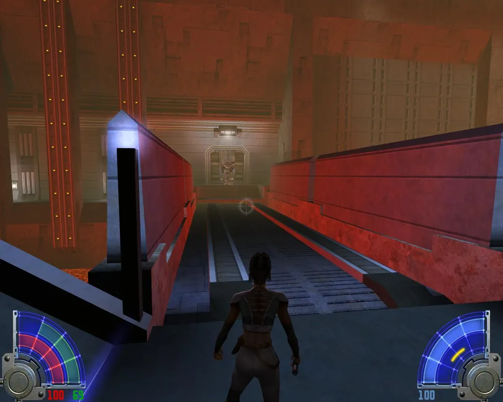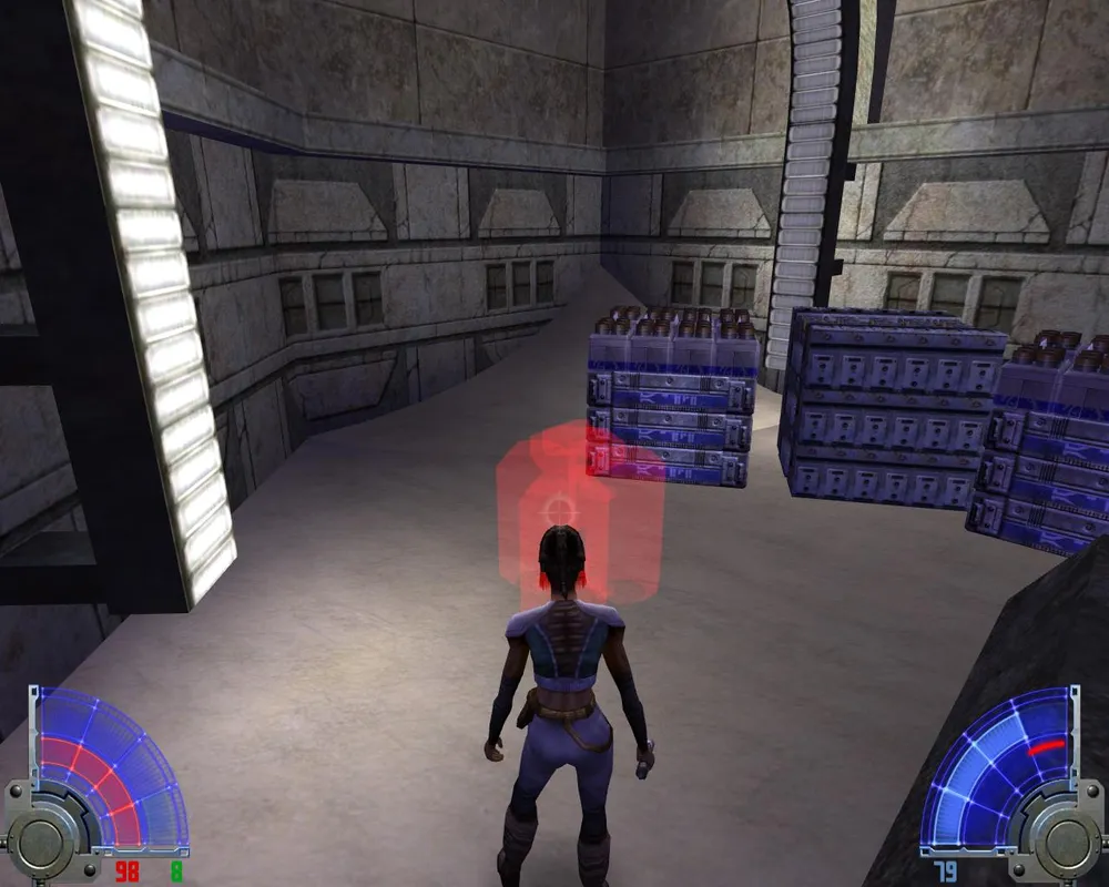 Убив их, спускаемся на лифте к еще двум точно таким же. На развилке - куда идти не важно, обе дороги приведут в один и тот же зал. Запрыгнув в нем на самый верх, видим еще одну заставку с Алорой, в которой она лишний раз пытается нас оскорбить. Пока идем по дороге, как обычно убивая джедаев и имперцев.