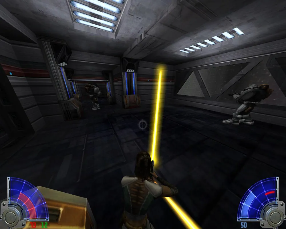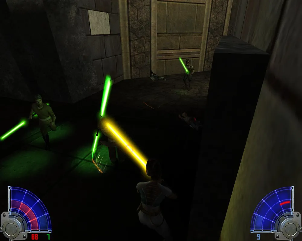 В следующем помещении нарываемся на кучу джедаев. Однако сложность только в джедаях с посохами. Даже у меня возникли проблемы с их убийством, даже на сложности "Джедай"