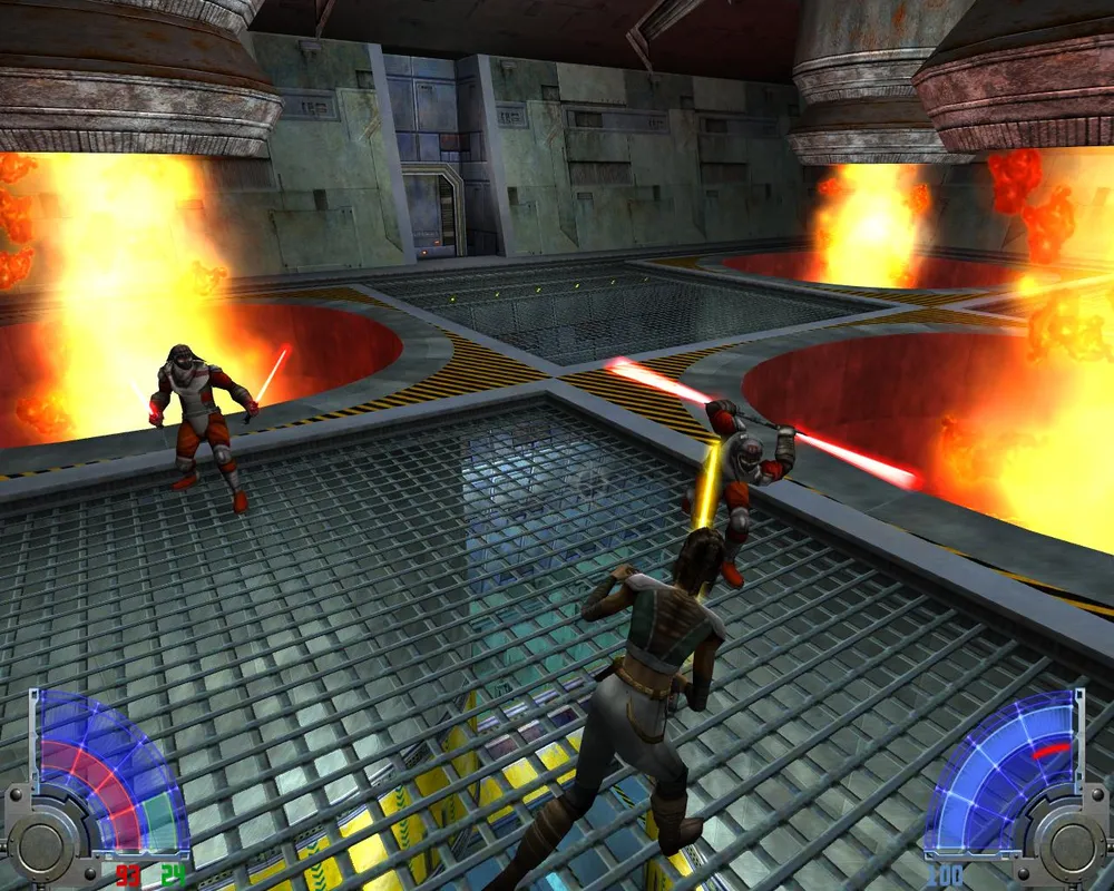 Пробравшись через обломки, находим лифт наверх. Пока идем по дороге, убивая джедаев и имперцев. Попав в комнату с огненными потоками Алора выпускает на нас двух сильных джедаев.