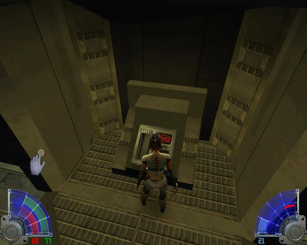 Выйдя оттуда, направляемся к двери с противоположной стороны, проходим по дороге до конца и ставим еще одну бомбу. Выйдя из взорванного помещения, прыгаем вниз и бежим направо по дороге, там мы найдем третий тайник. Возвращаемся к кораблю и идем в дверь справа от него. Идем по дороге и заходим в первую дверь справа. Если повернуть направо и пройти по длинному коридору, то в конце мы найдем кое-что полезное.
