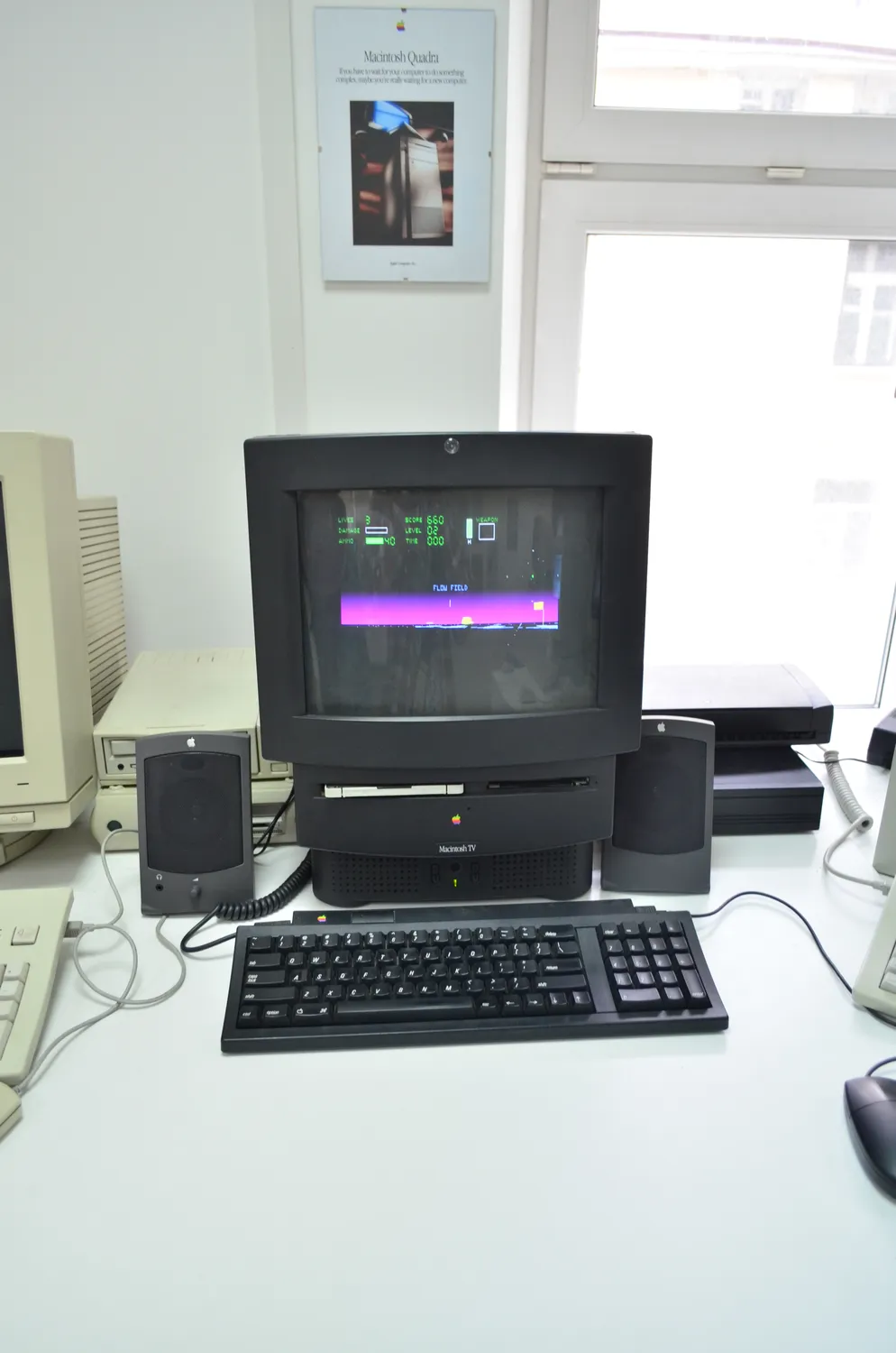 Но хватит о помещении, ведь нас интересуют именно экспонаты. А они прекрасны. Особенно для олдфагов, любителей старой техники и, конечно же, фанатов Apple. Так как к последним я не отношусь, то оцениваю экспозицию с первых двух позиций. Главная прелесть музея - любой включенный Мак можно пощупать, поработать в открытых программах и даже поиграть в запущенные игры! Скажу честно, когда я встал за джойстик у мака, на котором был запущен Pac-Man, на двуцветном мониторе, мне показалось, что сейчас снова 1991й год, мне снова три-четыре года и дедушка включил волшебную машину "Компутер", вставил 5" дискету и отправил меня в виртуальные приключения... В этот день посетители могли насладиться не только вечно голодной эмблемой Сбербанка, но еще классическим арканоидом, мехнеровскими шедеврами Prince of Persia и Karateka, искоренять нечисть в Hexen II, погонять по бездорожью в не известной мне гонке и поиграть в так же не идентифицированную головоломку. И все это на разных машинах, с совершенно различными ощущениями.