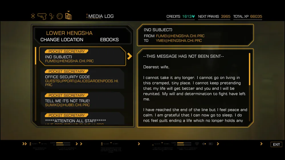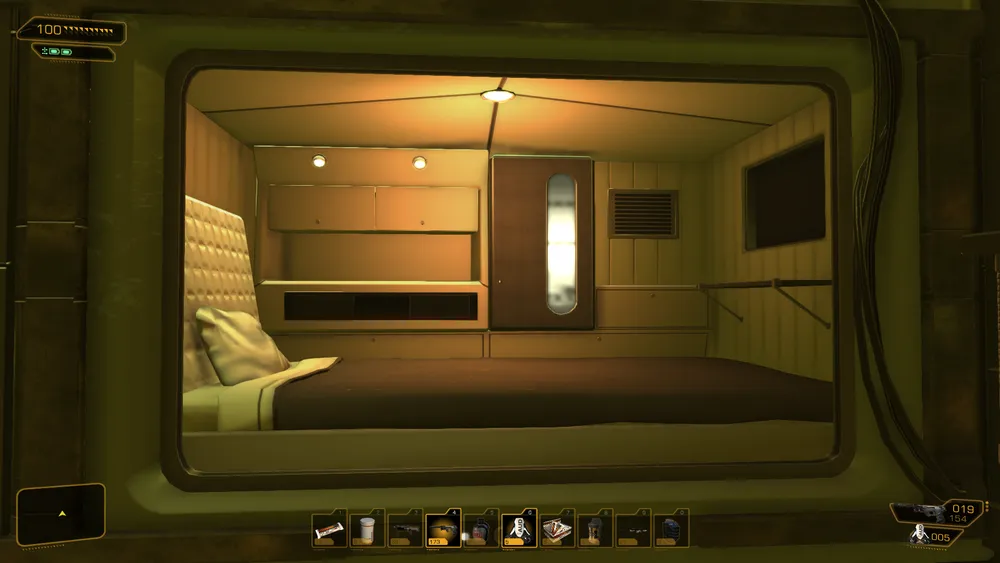 В Шанхае 2027г. Адам Дженсен сталкивается с гениальностью местных архитекторов и чиновников, побывав в большом капсульном отеле «Элис Гарден». Здесь нет своей комнаты - все постояльцы живут в компактных капсулах, похожих на плацкартную полку в купе поезда. Внутри только вещи первой необходимости — кровать, шкаф, холодильник, ну и телевизор, разумеется. В капсуле есть электричество, поэтому вы можете подключить акустику, принтер или любую другую периферию. Микроволновки и тостеры выносятся на отдельный столик. Кухня, столовая, туалет и ванна - разумеется, общие. Рядом находится зона отдыха, где можно посидеть и поиграть со своими соседями в азартные игры.