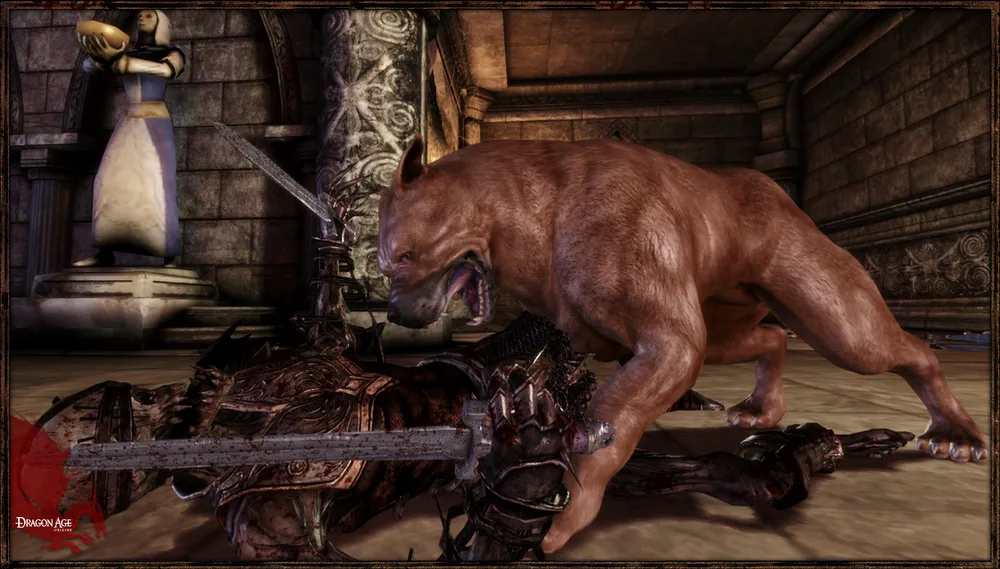 BioWare прокомментировала этих созданий так: «Натренированные собаки могут с легкостью скинуть рыцаря с его лошади или подпортить планы копьеносцу, а оказавшийся в поле зрения отряд боевых собак, рычащих или воющих, может вселить панику в ряды даже самых смелых солдат».