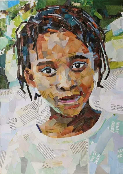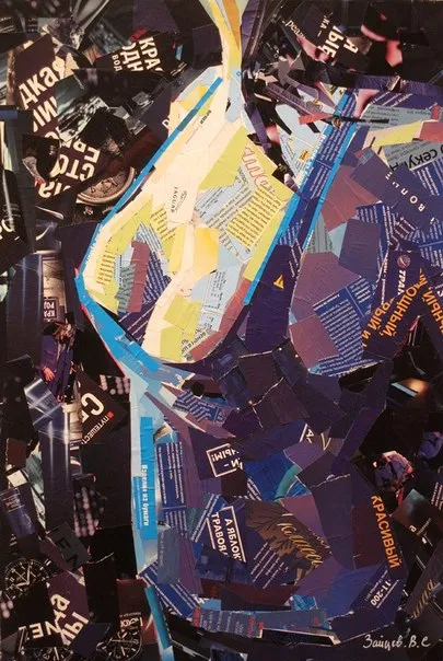Основная идея творчества возникла случайно, он просто рисовал и в какой-то момент обратил внимание на оказавшийся рядом журнал. Славу озарило, что страницы журнала можно использовать вместо красок. И тогда он решил поэкспериментировать в технике коллажа из журнальных вырезок. Сам текст на обрезках глянцевой бумаги для художника не имеет никакого значения. Для работ подходят любые журналы, важны только качество и цвет бумаги. Да и манера обращения с таким интересным материалом у художника не одинакова: иногда обрезки аккуратно сложены, иногда просто оторванными случайным образом, иногда помяты.