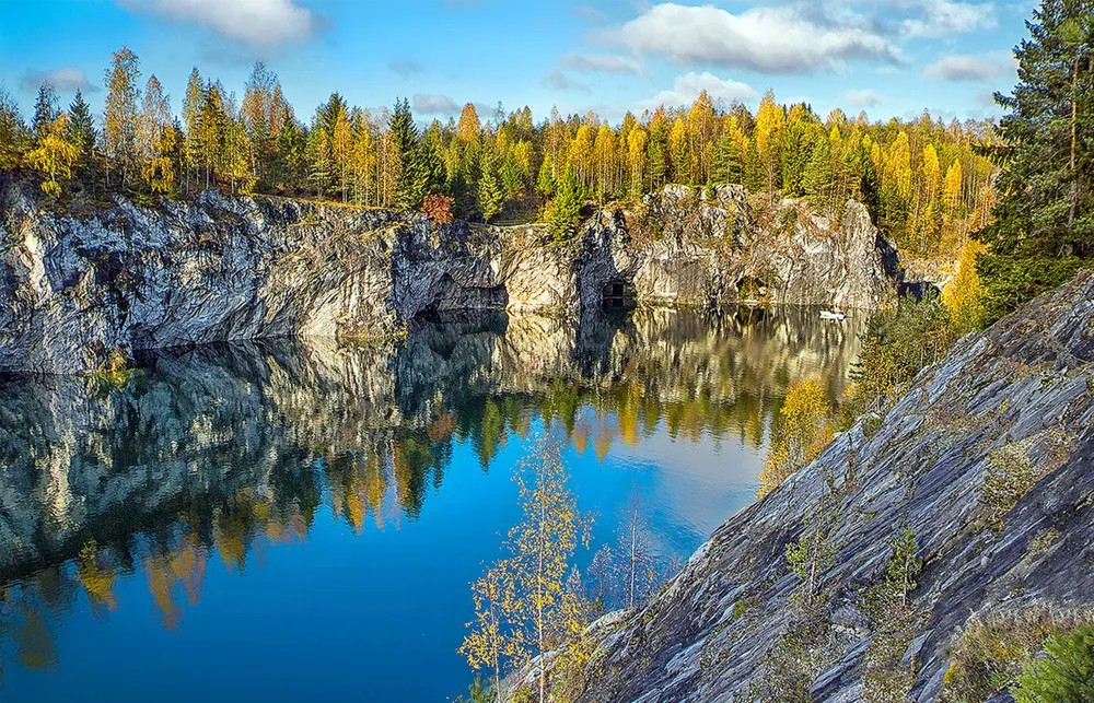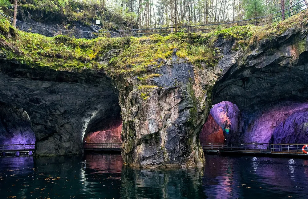 Зимой на поверхности подземного озера катаются на коньках и проводят фестивали ледяных скульптур. Кстати, ледяные соборы как раз те, при строительстве которых использовался Рускеальский мрамор: Исаакиевский и Казанский.