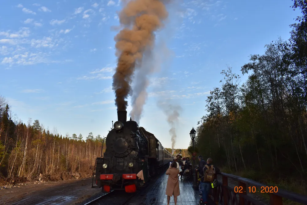 В шесть утра «Ласточка» с Финляндского вокзала, через час мы в Выборге. Ещё три с небольшим часа в другом направлении, и та же «Ласточка» на буксире у тепловоза прибывает в Сортавалу. Где происходит пересадка в "Рускеальский экспресс", ведомый… паровозом! О да!
