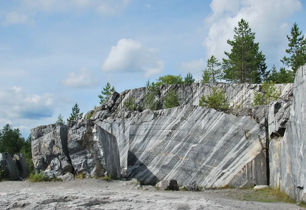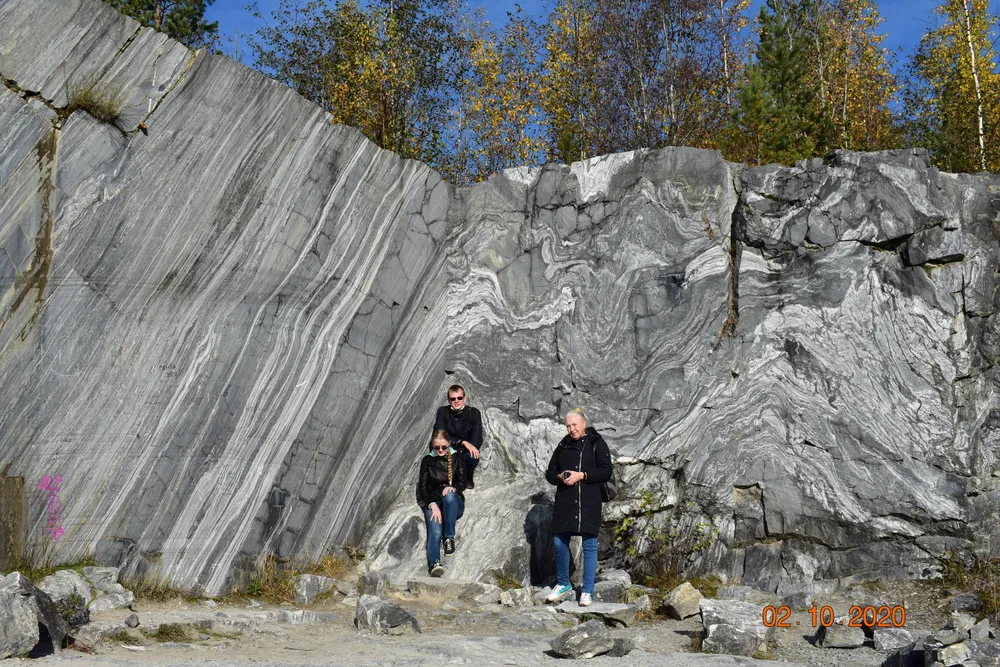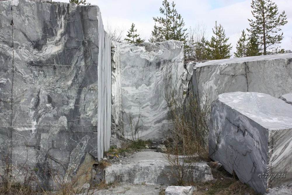 Затем посетили "Итальянский карьер": место, где велась разработка мрамора в восьмидесятые годы прошлого века, по итальянской технологии. Мрамором из этого карьера отделаны станции метро «Приморская» и «Ладожская» в Санкт-Петербурге.