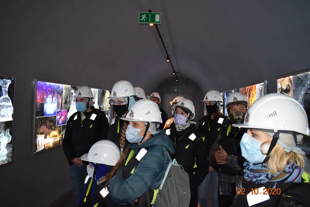 Каски - не причуда, а необходимый предмет снаряжения: потолок в отдельных местах нависает очень низко; все каски исцарапаны.