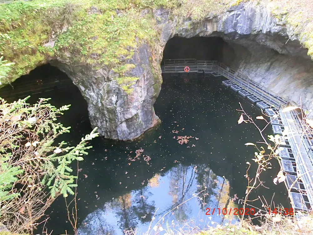 На входе в парк касса, можно оплатить аренду лодки (строго по времени), поездку к водопадам (только в выходные), экскурсию в подземные выработки – что мы и сделали.