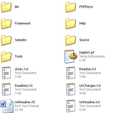 После загрузки DelphiX и распаковки архива у Вас должна быть главная папка которая будет иметь такие подкаталоги и файлы: