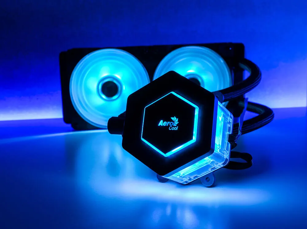 Нагрев системы — вечная проблема любителей мощных устройств. Выход — водяная система охлаждения для игрового десктопа, а оптимальный выход — AeroCool P7-L240. Ее медный водоблок быстро отводит жар, а микроканалы рассеивают тепло так, чтобы процессор даже при разгоне не выжигал систему и не терял производительность. Идеальный тепловой баланс гарантирован. Кроме того, AeroCool P7-L240 хороша еще и тем, что она красивая: RGB-подсветка, прозрачный корпус и полупрозрачные вентиляторы — система будет мерцать всеми цветами радуги так, что глаз не оторвать.