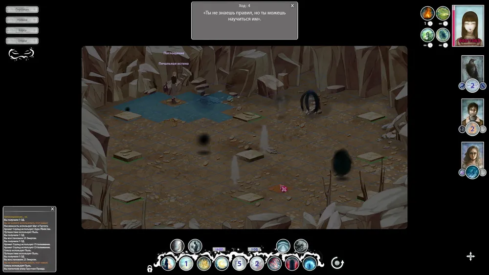 2) Противоречие темпов. Опять же очень разнящиеся ритмы медитативного шествия по городку и комнатам помещений, и жестких боев. Ты должен быстро перейти с расслабленного созерцания передвижения команды по деревне к быстрым движениям мышкой и кликания по иконкам действий, потому что кнопок быстрого действия в игре не предусмотрено. Это очень сложно и пройти бои с первого, а то и третьего раза, очень сложно, тем более что необходимость быстрого действия отягощено невидимыми ловушками, которые ты видишь только после того как они действуют.