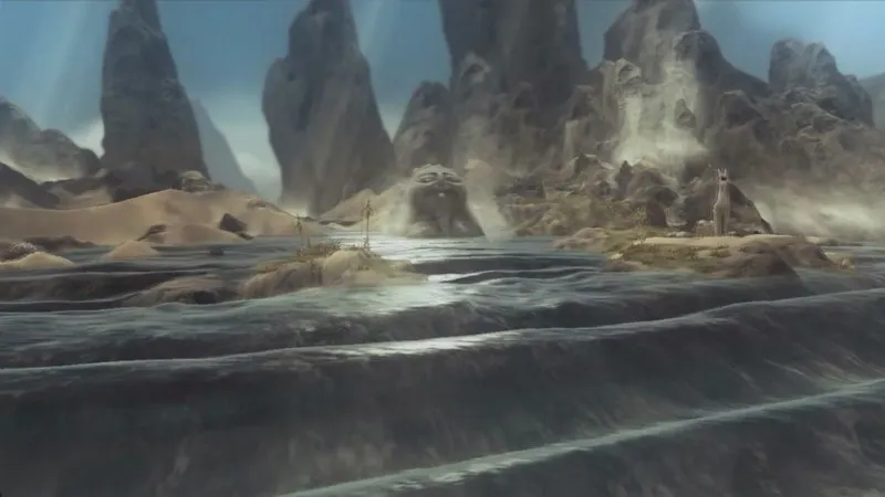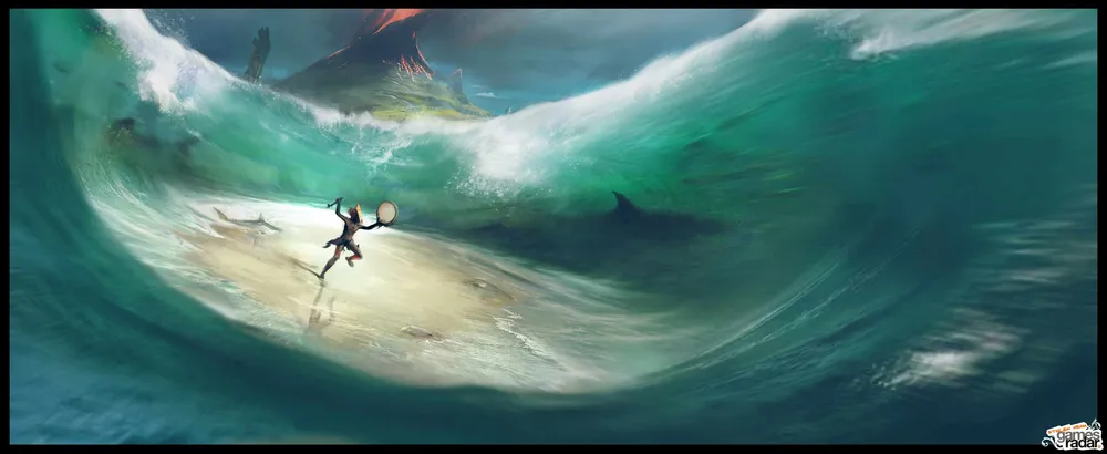 Предварительный скриншот из игры, захвачен из её дебютного трейлера. На скриншоте демонстрируется технология моделирования жидкостей — объёмные волны в нижней части изображения.