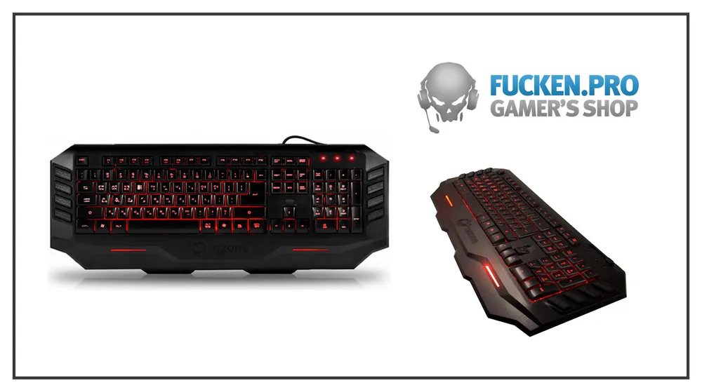 Также у нас есть клавиатура Ozone Blade с демонической красной подсветкой (или ангельской синей, как настроите), мембранными клавишами, программируемыми макросами и позолоченным USB. Мультимедийные кнопки-примочки также прилагаются. Хватайте ее, пока она не убежала!