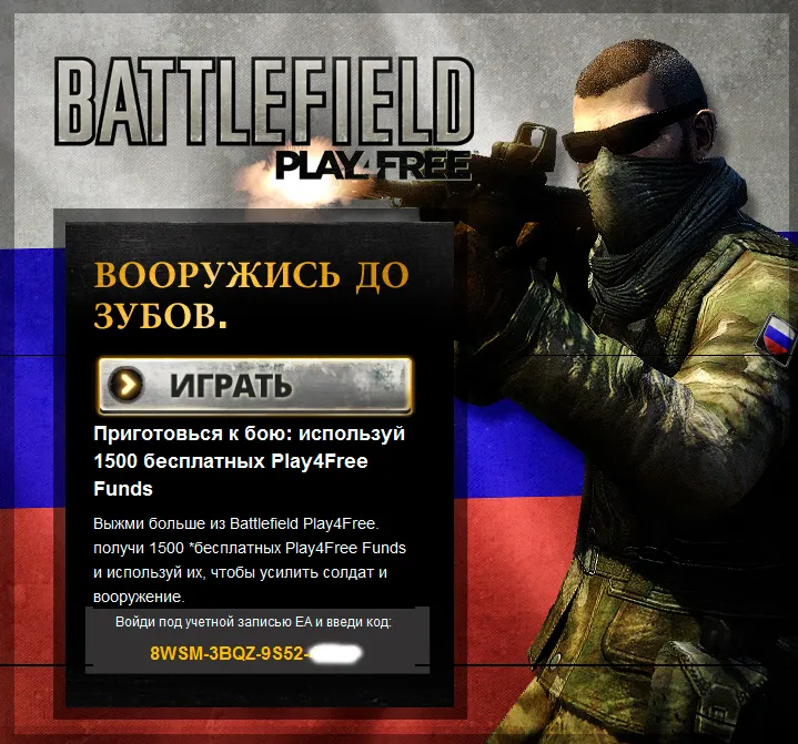 Например, неделю назад рассылали коды на получение 1500 funds для игры Battlefield-play4free.