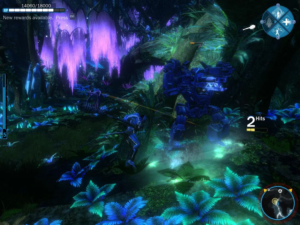 Если мы решили сродниться с культурой На’ви, игра совершит кульбит и предложит нам своеобразный слэшер. Основной инструментарий «индейцев» - оружие ближнего боя (парные кинжалы, боевой посох, дубинка). Но так как земляне стреляют издалека и каждое попадание сказывается на самочувствии героя весьма заметно, основное время мы будем бегать с луком. Арбалет поможет нам при борьбе с тяжелой техникой (экзокостюмы, вертолеты). А мечи-топоры с серьезными «повреждающими» возможностями остаются в запасе на всякий пожарный. Геймплей после выбора фракции разнится не так сильно, как хотелось бы. Что На’ви, что люди носятся по одним и тем же джунглям, выполняя приказы своих главнокомандующих. У каждого вида присутствуют спецабилки, предназначенные для самых жарких перестрелок. Так, наш герой, кем бы то он ни был, умеет подлечивать свою покалеченную тушку, одевать плащ-невидимку, искусственным образом ускорять свой шаг. Конечно, определенные различия имеют место быть. Так, одни полагаются на силы природы, вызывая осиный рой или стаю шавок, другие предпочитают использовать отпугиватели зверей и артиллерийскую поддержку.