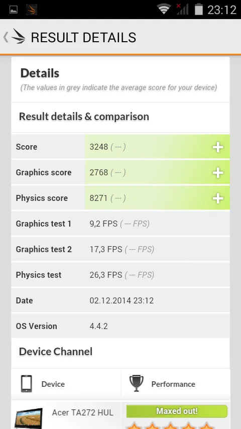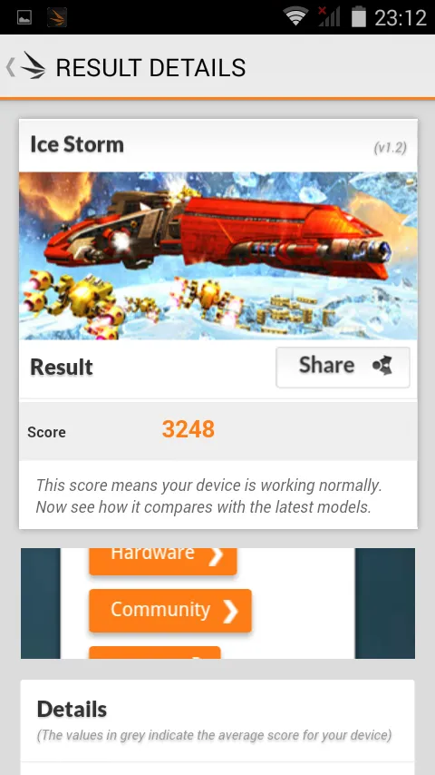 Игровой бенчмарк 3DMark Ice Storm показал, что все современные игры будут запускаться на этом смартфоне, и работать достаточно плавно, но не более того. Впрочем, смартфон и не позиционируется как игровой.