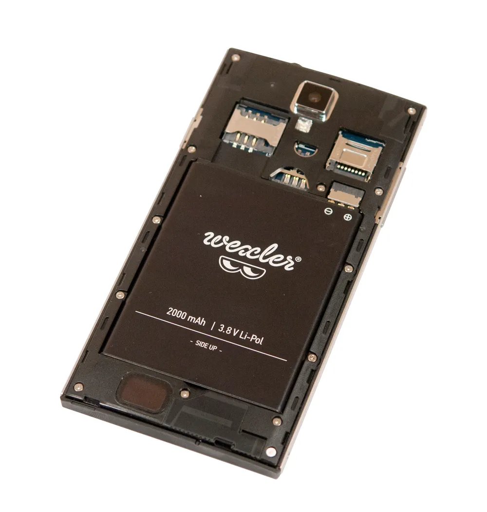 После распаковки модели пользователю необходимо установить аккумулятор, который идет в комплекте с устройством и SIM-карту. В этом смартфоне используется аккумуляторная батарея емкостью 2000 мАч, благодаря чему смартфон имеет высокие показатели автономной работы.