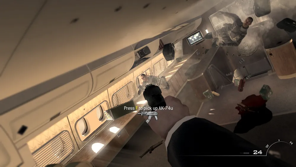 Есть два классных момента, которые выбиваются из общей картины - хороший и плохой. Первый из них, удачный – перестрелка в падающем самолете: фюзеляж раскачивает из стороны в сторону, враги бьются об стены или даже летают па салону, а игрок вынужден вести в таких условиях перестрелку, тщательно прицеливаясь из своего пистолета. Всего этот отрывок длится около полутора минут, и он великолепен.