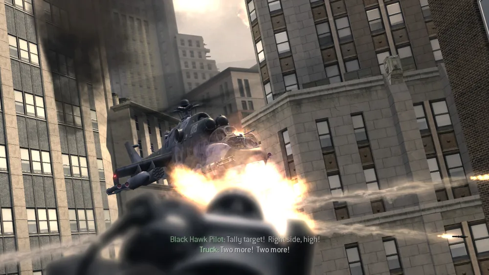 Теперь вы чётко знаете, что нужно делать, отчасти потому, что задача теперь всегда одна и та же – дойти из пункта А в пункт B, попутно расстреливая врагов. Или, для разнообразия, расправляться с ними, следуя за кем-то. Или сесть за пулемет в машине или вертолете и избавляться от всех, кто будет по пути. Пока вы находитесь в движении, напряженность нарратива держится на одном и том же уровне.