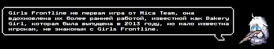 Bakery Girl ответвление от игры Girls Frontline. Если вы знакомы с Girls Frontline, вы знаете что там есть настоящие военные пушки именами которых названы девочки. Girls Frontline созданы разработчиками Mica Team. Girls Frontline представлена разным оружием, вы можете там сражаться, и поближе знакомиться с девочками.