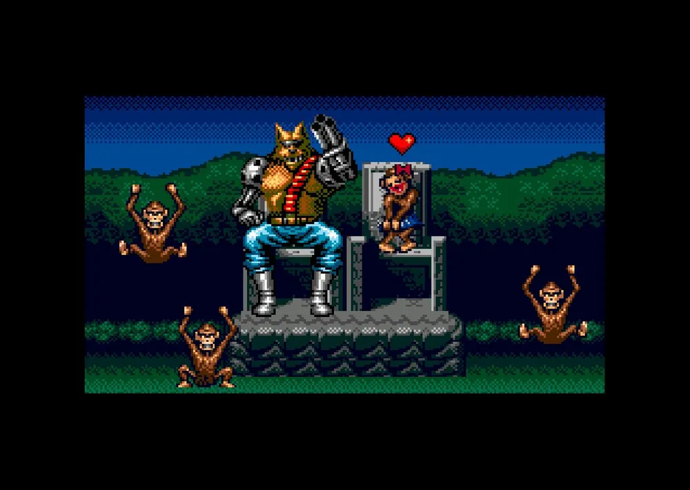 После того как вы уничтожите голову, ваш герой обнаружит, что портал который использовала эта голова все еще открыт и немедленно прыгнет туда. В результате он перенесется в глубокое прошлое, к динозаврам и обезьянам. Учитывая свое вооружение и способности он без труда станет там властелином и царем.