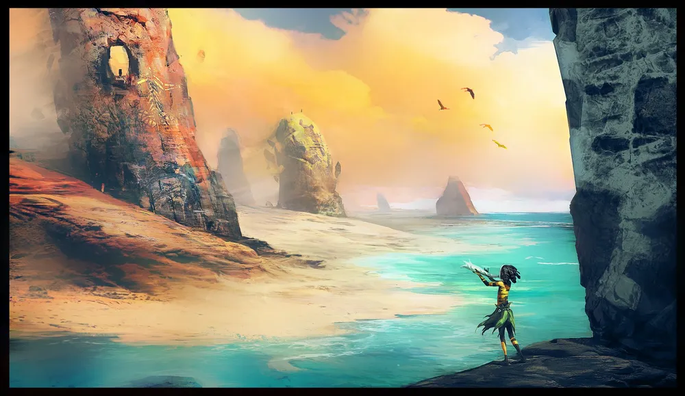 So, I did get these people to their first totem, though Mother Nature did subject the people to at least one crushing wave. They learned a song and fought off future water walls with dancing, singing and drumming. I could zoom in for a closer look, witnessing the celebration from a human perspective. The people have the power here, I'm just their local representative, I thought.