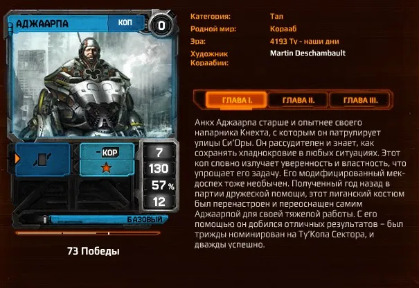 Итак, бои в Кораабии делятся на PvE и PvP, для которых также предусмотрено две отдельные планеты (читай, каналы) - Корааб и Коптид соответственно. PvE-сегмент выражен в шести полноценных кампаниях: по одной за каждую фракцию, плюс одна дополнительная. Сама кампания представляет собой ветку взаимосвязанных многоэтапных квестов, за прохождение которых можно получить разнообразные плюшки: новые карты и наборы карт, способности (связи), уловки, аватарки и игровую валюту, которой в Кораабии аж два вида. Если же говорить о PvP, то здесь все немного проще - одиночные поединки между двумя игроками, а также целая система разнообразных и, опять же, взаимосвязанных турниров. За участие в последних дается преимущественно игровая валюта и респект игрового комьюнити. :) Впрочем, если стать чемпионом чемпионов, можно получить убер-карту.