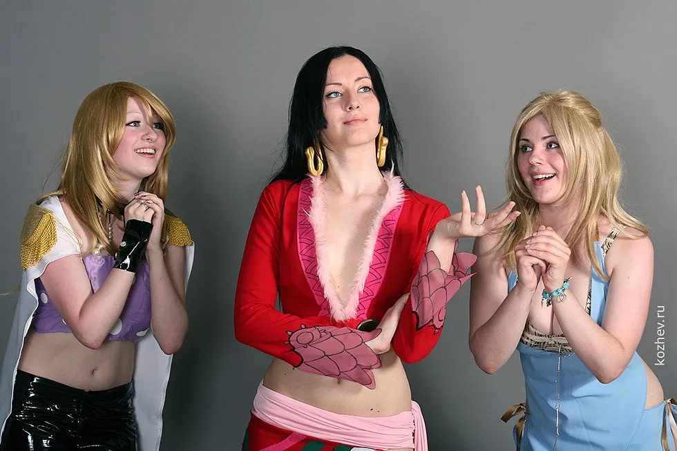 Ониксия (в центре) в образе Боа Хенхок из One Piece