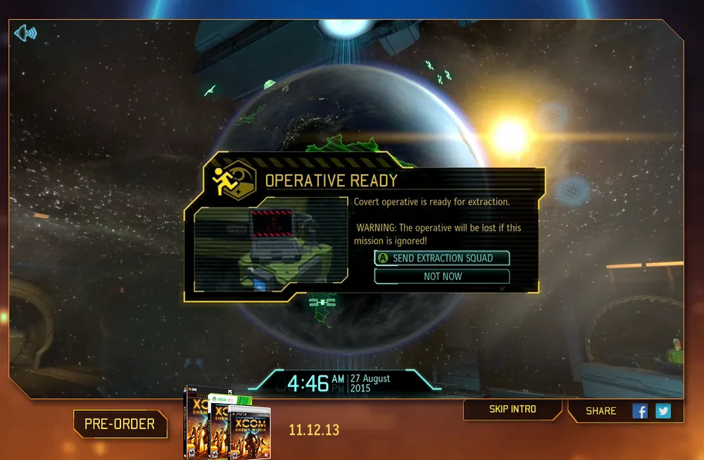 Данный трейлер позволяет вам пройти целую миссию из XCOM: Enemy Within, но с одним условием: вся тактическая глубина сводится к тому, что каждый ваш боец имеет право лишь на два каких-то действия. Ваше влияние на события сводится к выбору, какое из двух действий произойдёт. Побежит ли солдат прямо сквозь здание или начнёт карабкаться на крышу? Поедет ли он домой пьяным или пойдет пешком? Причём, как и всегда в подобного рода решениях, велика вероятность, что, если он пойдёт пешком, то его собьёт грузовик; а если поедет, то благополучно доберётся до дома. Но, ладно, не буду больше вас отвлекать, наслаждайтесь: