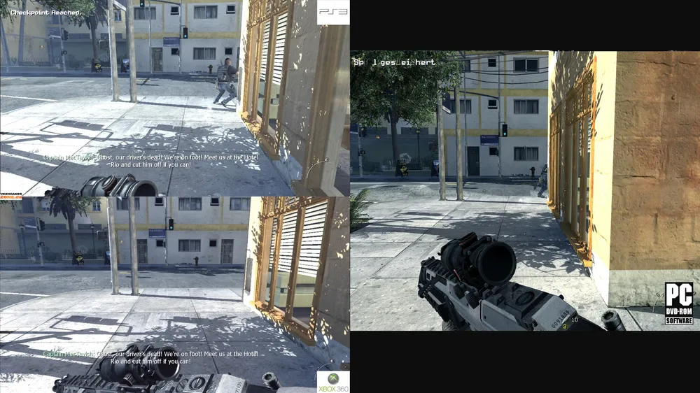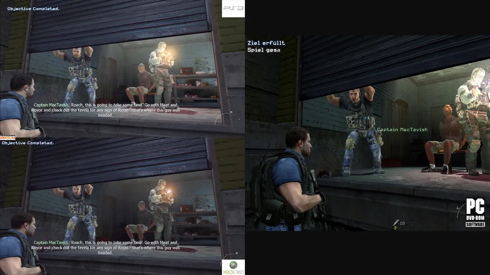 Немецкий сайт PCGames.de попытался сравнить качество графики в игре Call of Duty: Modern Warfare 2 на различных системах, PC, XBox360, PS3, и сделал он это при помощи скриншотов.