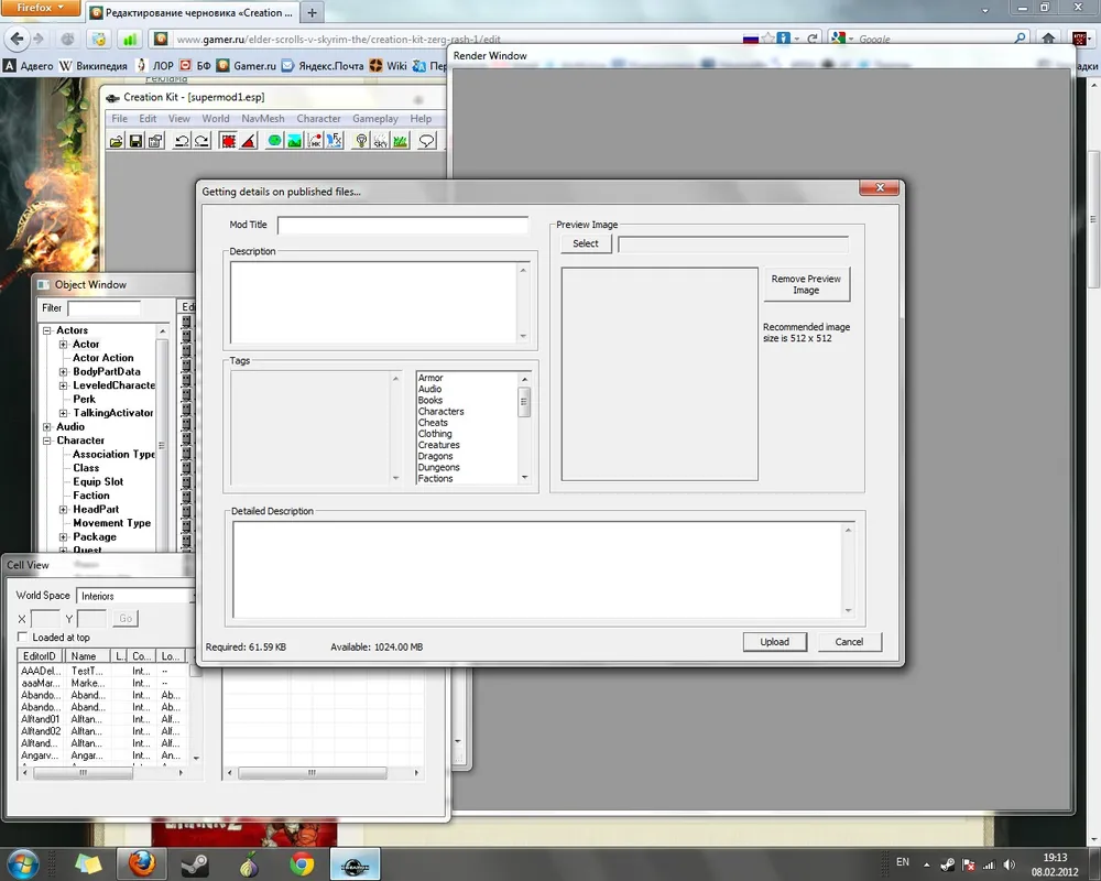Можно его протестировать, запустив игру и зайдя в Вайтран. Под мостом внезапно появилась загадочная дверь, зайдя в которую можно совершить бескомпромиссное вторжение в дом ничего не подозревающей Амрен. Теперь осталось лишь залить наш мод в Steam Workshop и рассказать друзьям о своих успехах. Для этого нажмите кнопку Upload To Steam (в меню File того же Creation Kit). Теперь можете просмотреть свое творение, нажав "Просмотреть файлы мастерской" в своем профиле в сообществе. Вот такой симпатичный плагинчик получился у меня.