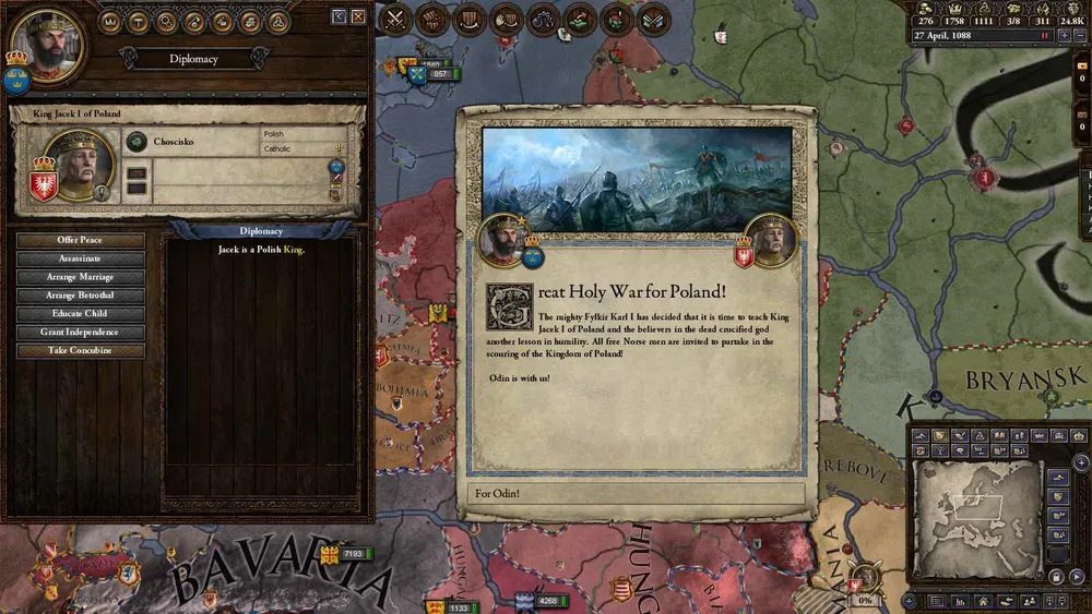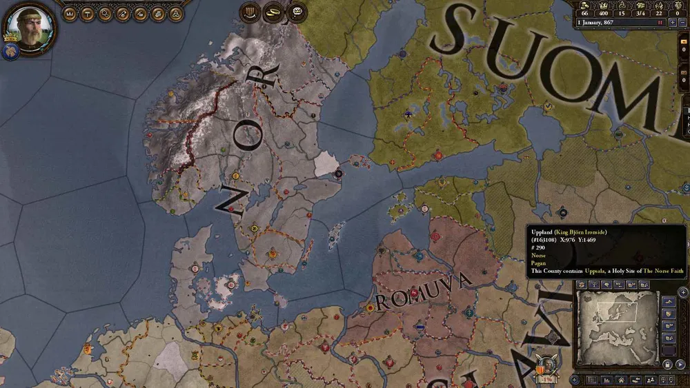 Реформирование веры нелегко. Вам потребуется контролировать три святыни и большой показатель благочестия в придачу. После реформирования вы получите главу религии. В случае со скандинавами, персонаж, который проводит реформацию, станет Филкиром [Fylkir; Если верить гуглу, то персонаж станет исландским футбольным клубом, но если попробовать перевести с современного норвежского, то выходит что «fyl» - графство, а «kir» - церковь, хотя, делать из этого выводы – диагноз и Задорнов стайл - прим.], выступающим в роли и светского правителя, и религиозного лидера, во многом похожим на исламского Халифа. Вы сможете объявлять священные войны: хоть великие языческие крестовые походы, хоть обычные религиозные войны против неверных. Главе также подчинены другие языческие религии, по аналогии с Вселенским Патриархом Константинопольским.