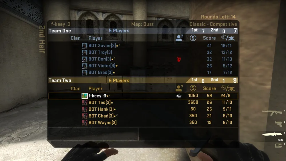Я так же подготовил для вас видео, демонстрирующее геймплей за обе стороны, на карте de_dust. Enjoy!