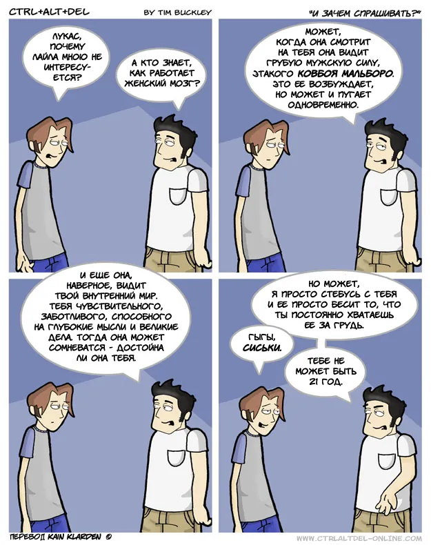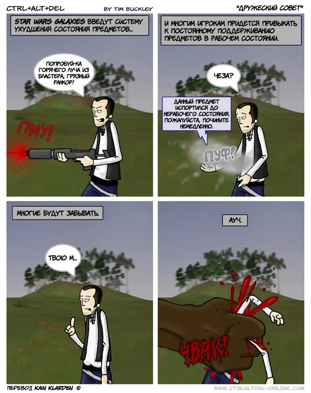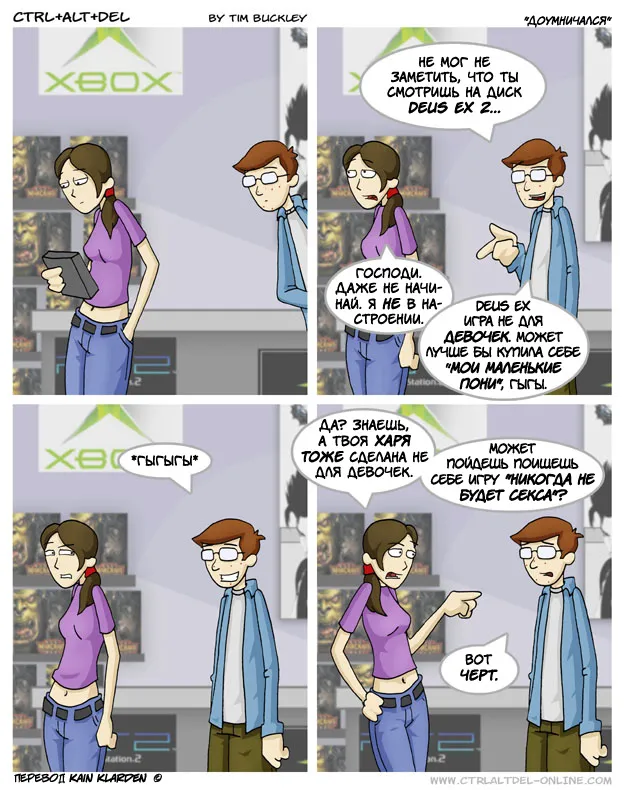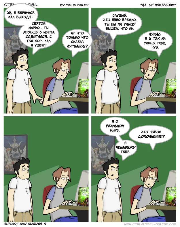 Собственно просмотреть весь комикс можно здесь чего я вам и советую (комикс всего ~700 картинок - но оно того стоит), я лишь выложил основные моменты, в особенности о комп. играх и геймерах, ну и мои комментарии к некоторым. Вчера просмотрел его - ушло часа 4 _^_ (это если норм. просматривать).