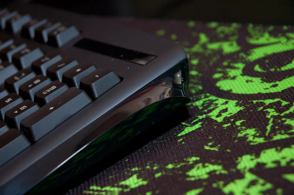 Качество сборки у Anansi, как и всей продукции Razer, можно оценить на 8 из 10. Все детали плотно посажены, ничего не скрипит и не грохочет. Но есть несколько моментов, на которые инженерам необходимо обратить внимание. Такие как, например, стыковка дна и нижней части верхней панели клавиатуры выглядит не очень аккуратной. Ее почти не видно, но я то знаю, что она вот такая! В том же месте слегка островаты грани клавиатуры, хотя при ее использовании рука с ними почти не соприкасается. Или вот еще один огрех, который по началу меня поверг в шок. Показалось, что клавиатура слегка несбаланисрованна по диагонали с левого нижнего на правый верхний край. Как на коврике, так и на ровном столе. Это явление пропало через пару дней после активного использования. Так что я не знаю, что это было. Кстати, клавиатура ставится на ножки. Ах да, клавиша пробел слегка дребезжит.