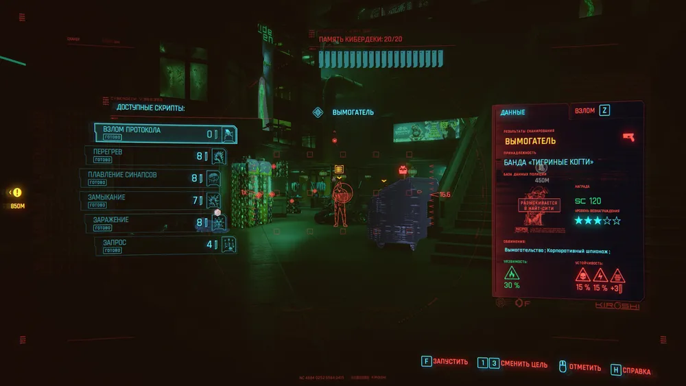 Самое же большое разочарование в навыках - "Шпион, выйди вон". Вражеские "боевые" нетраннеры встречаются считанное число раз, не представляют заметной опасности, а даже если их обнаружить, что уже само по себе нетривиальная задача, даже с навыком (они визуально не отличаются от прочих врагов, а кроме того - попробуй до них доберись - они предпочитают держаться в глубоком тылу). А также не работающий "Анамнез". Память кибердеки легко опустошается, что с ним, что без.