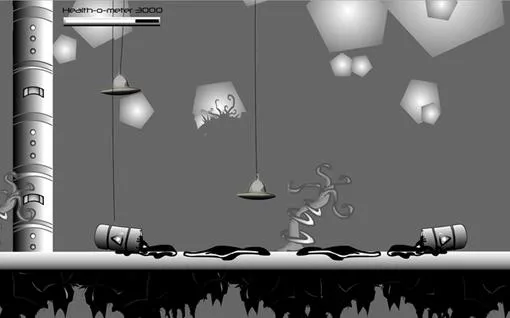 Но не только этим примечательна Gunlimb– в игре нашлось место и инновациям. Перемещается наш герой только силой отдачи своего оружия: действие, как мы помним из курса физики, равно противодействию. Стреляем в одну сторону – перемещаемся в другую; позже этот же механизм использовали в Osmos, но, разумеется, на более выском уровне.