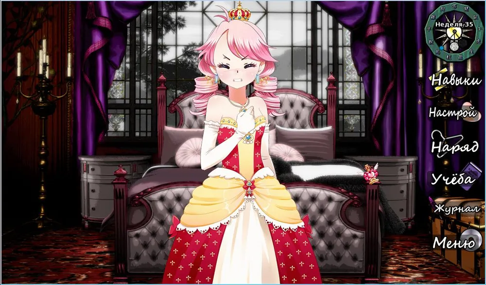 Игровой функционал, меню и арт орнамент сюжетных сценок и диалогов минималистичны и похожи на оформление визуальных новелл, и поэтому игра весит немного. Всё в игре похоже на геймплей визуальных новелл; мы читаем диалоги, вникаем в историю, выбираем реплики и решения. Кроме этого наша принцесса-няшка пять дней в неделю занимается учёбой с кучей преподавателей, а в перерыве между утренними и вечерними занятиями, и в выходные дни бегает по дворцу и его окрестностям, общается с герцогинями и графами, слугами и подданными, присутствует на церемониях и судах, или просто сидит у себя в комнате. В отличии от визуальной новеллы, здесь надо следить за настроением принцессы. Оно очень важно.